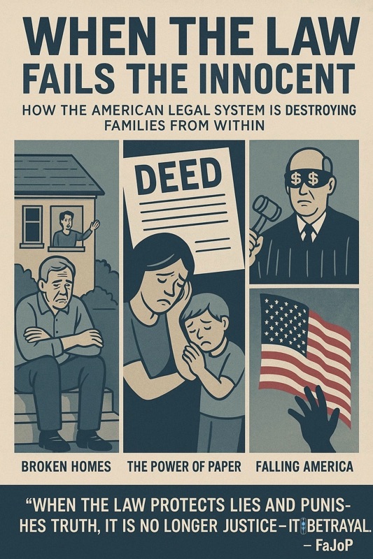 America, once a beacon of hope and opportunity, has become a country where children pray for their parents' demise to inherit property. The law and legal system often prioritize documents over truth, allowing criminals to manipulate and exploit the vulnerable.