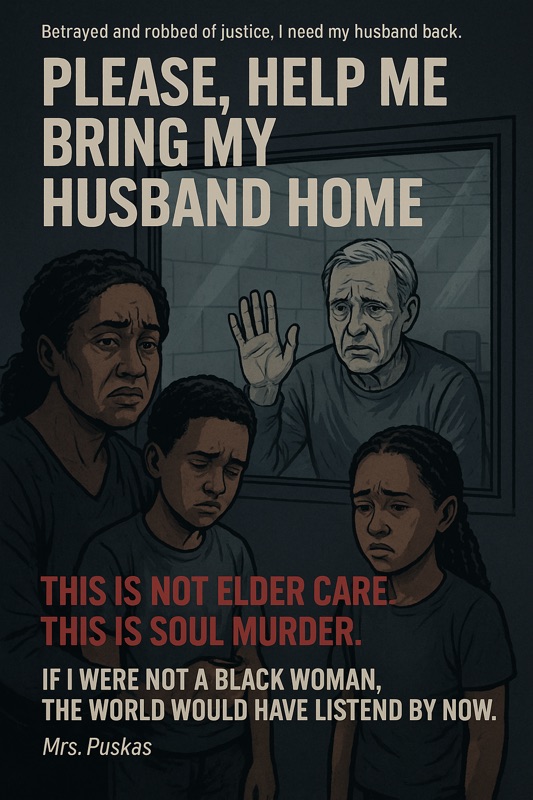 My husband is now locked away in a home-care facility—a place he calls a prison meant for criminals, not a refuge for the sick. And the cruelest part? He cries daily to come home. He begs to return to the family he built, to the children he loves, to the woman who has stood by him through thick and thin. But Curt and Vanessa Puskas have stolen that chance from him—because of inheritance, because of money that was never meant for them.
