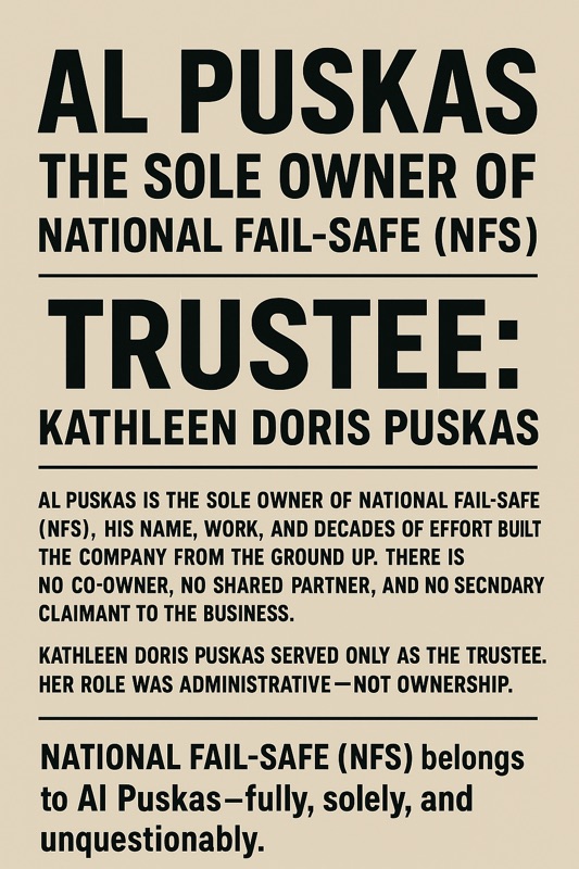 AL PUSKAS: THE SOLE OWNER OF NATIONAL FAIL-SAFE (NFS)