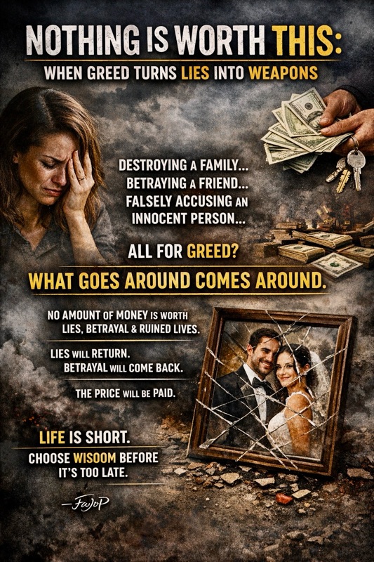 Yet every day, people go to extreme lengths—false accusations, calculated lies, emotional manipulation, legal abuse, character assassination—all driven by greed.