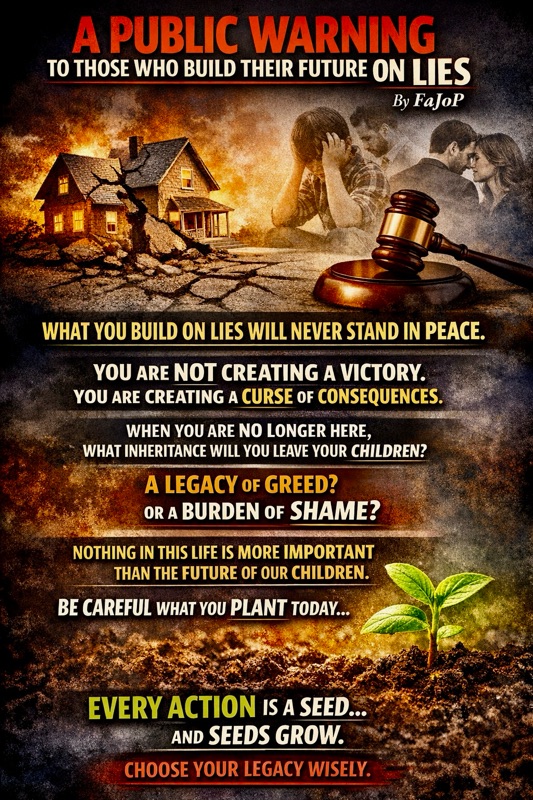 A PUBLIC WARNING TO THOSE WHO BUILD THEIR FUTURE ON LIES ~ FaJoP